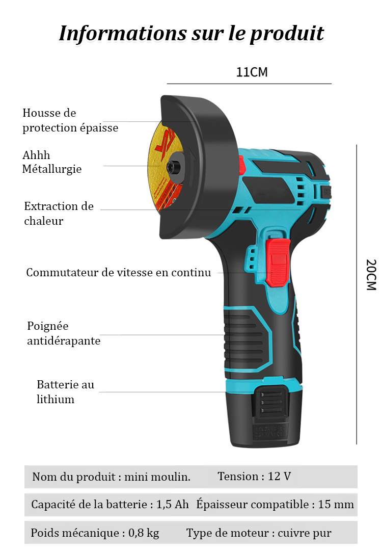 【Polisseuse à batterie lithium】Mini meuleuse d'angle à batterie lithium