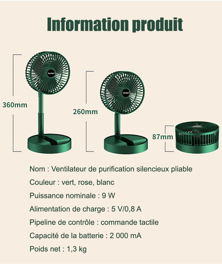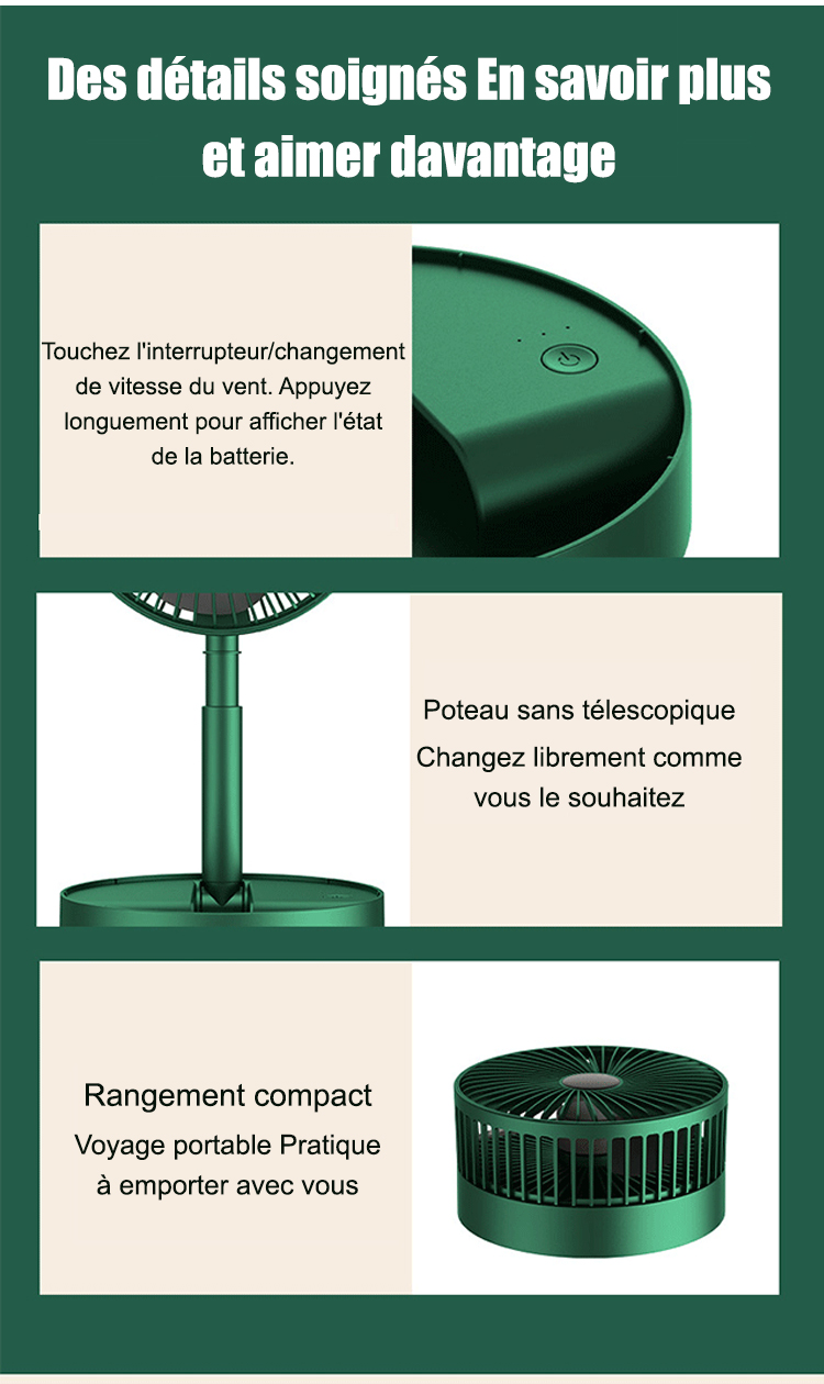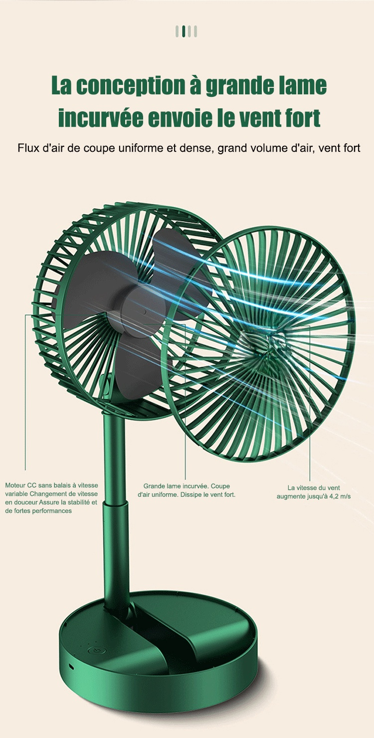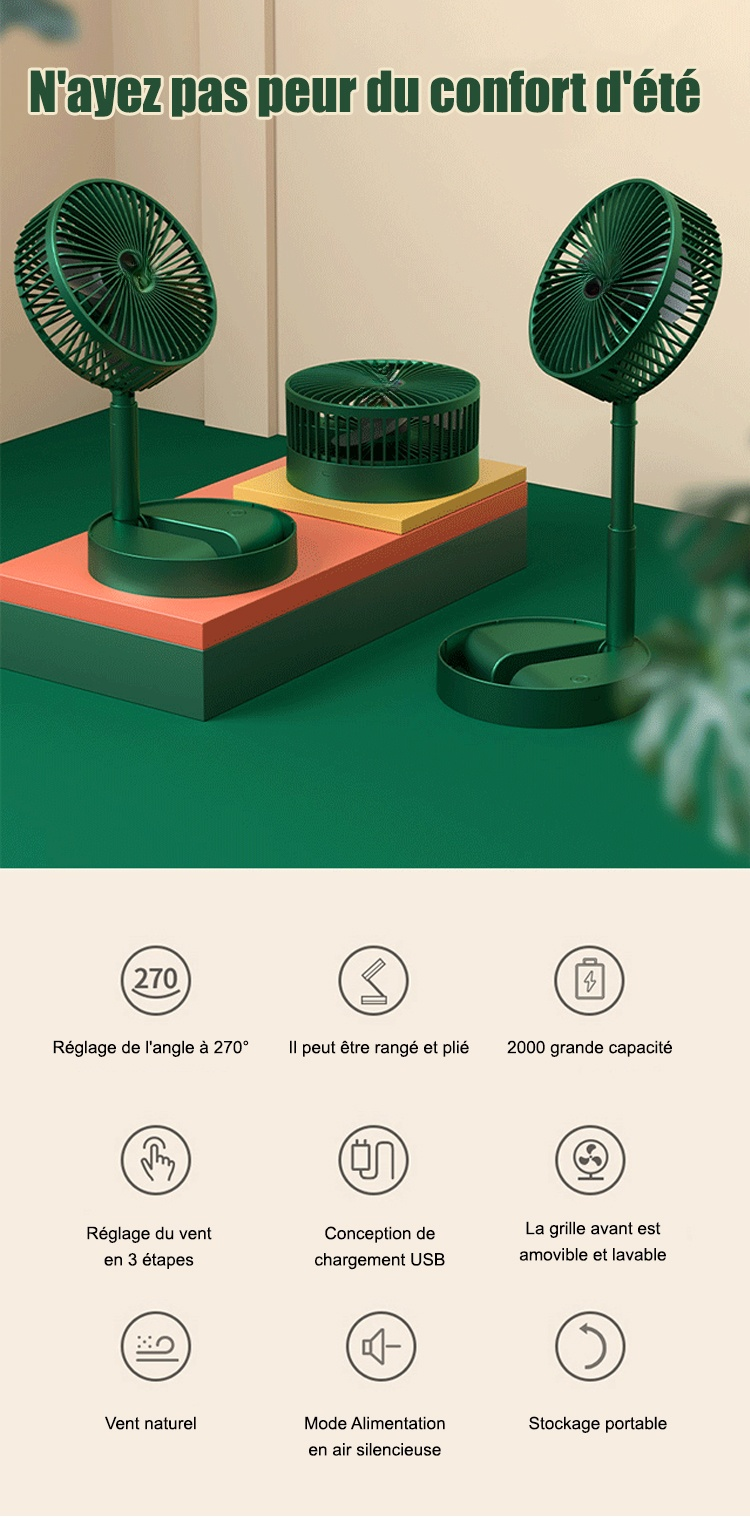 Ventilateur de table télescopique pliable avec chargeur USB (remise de dernière heure)