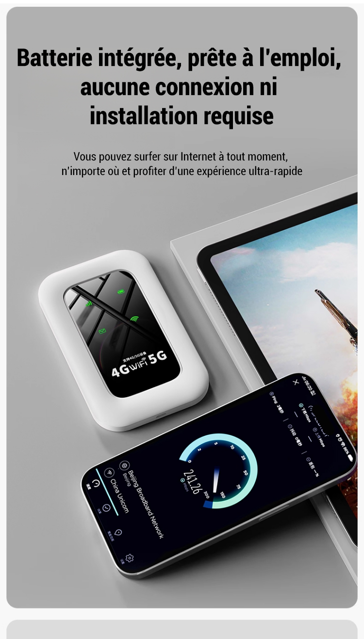 WiFi portable universel, prêt à l'emploi, gratuit à vie🛑Accédez à Internet partout et à tout moment⏰Connectez jusqu'à 10 appareils simultanément✨Connexion rapide, privée et 100 % sécurisée. Dites adieu aux interruptions de réseau.