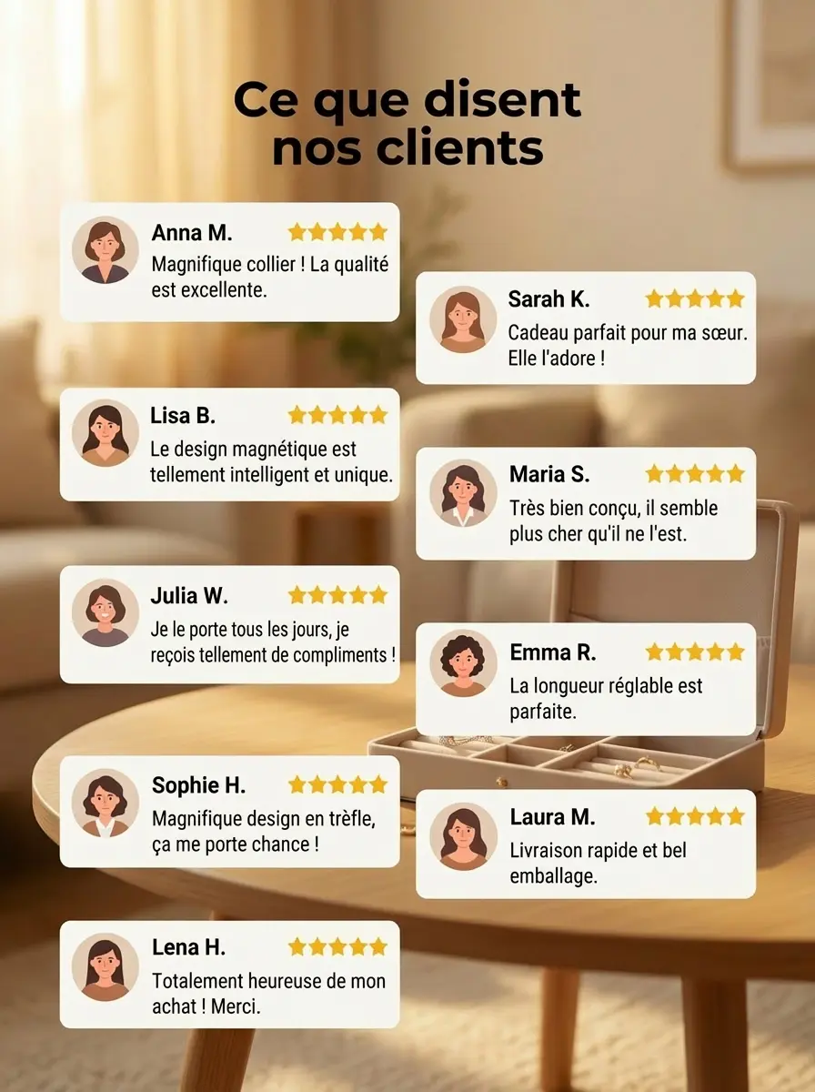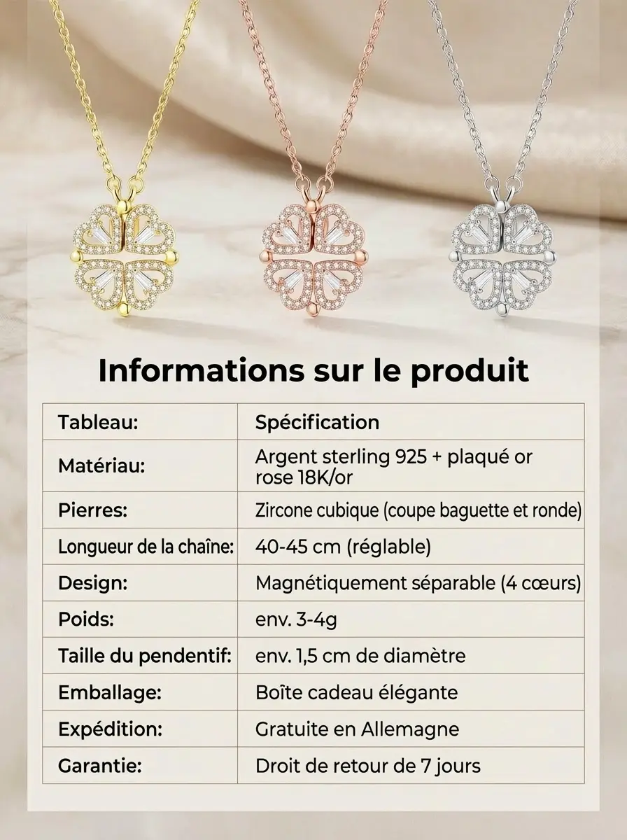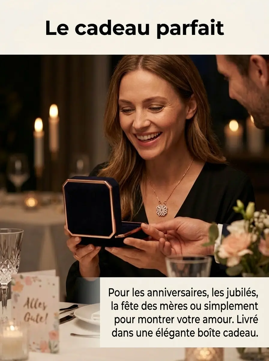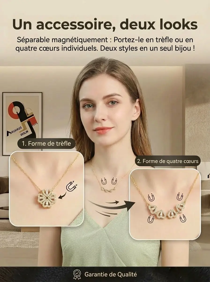 Collier « Trèfle à quatre feuilles »🔥Offre Exclusive Fête des Mères : -50% + Magnifique Boîte Cadeau Offerte ! 🛑Le cadeau de Fête des Mères quifait le buzz à Paris ! ⏰‼1Collier, 2 Façons de le porter. La surprise parfaite pour Maman. ✨Livraison Express