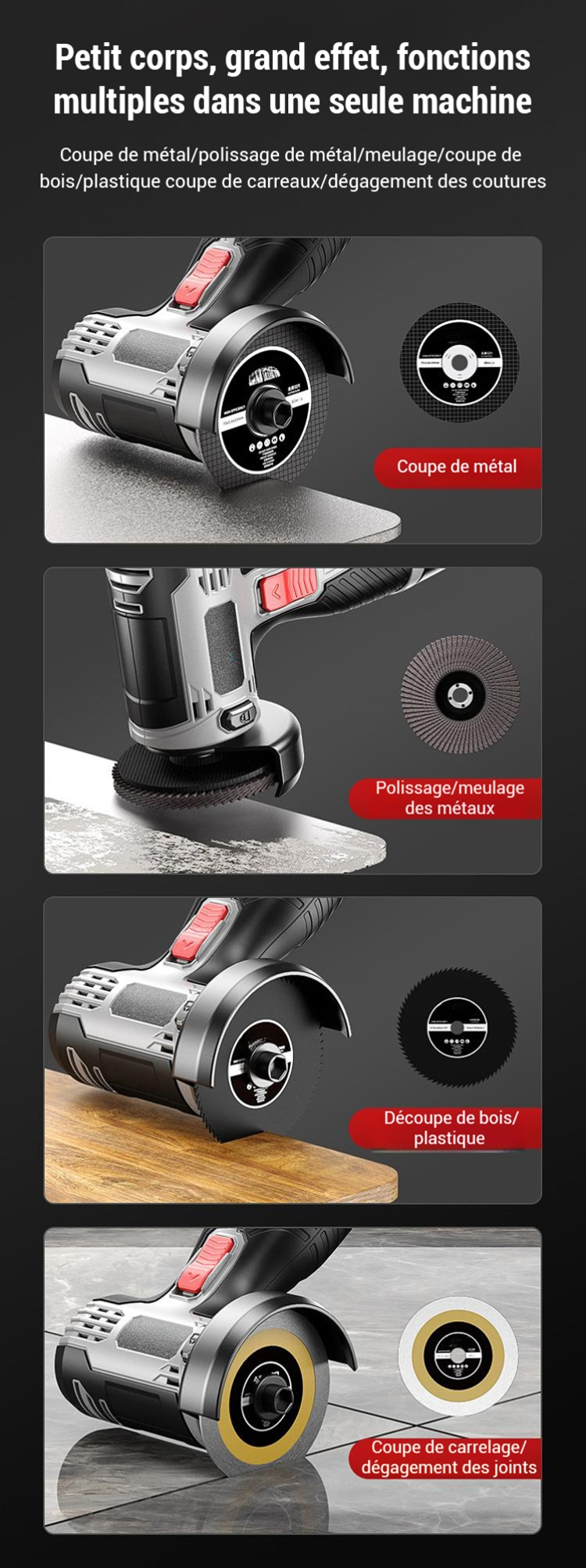 Découpe, meulage, dérouillage et polissage ! Offre limitée ! Recevez 10 disques de coupe professionnels offerts avec votre commande !